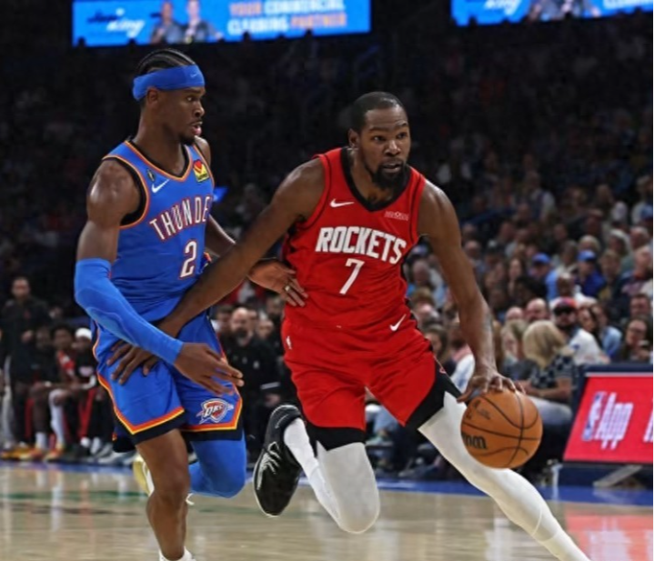杜兰特的火箭首秀则充满“里程悲”色彩。他出场47分钟贡献23分9篮板3助攻,投篮16中9的效率本属合格,但末段体能下滑导致防守失位,最终六犯离场成为比赛转折点。